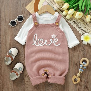 Knitted Baby Girl Romper Sleeveless Pink Letter Jumpsuit