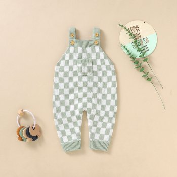 Baby Girls and Boys Sleeveless Knitted Overalls Romper with Front Pocket