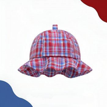 Chic Plaid Lotus Leaf Bucket Hat – Summer Sun Protection for Women