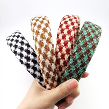 Classic Houndstooth Plaid Wide Sponge Headband – Non-Slip Hairband for Women & Girls