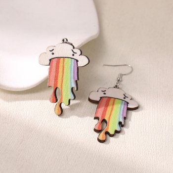 Hypoallergenic Rainbow Cloud Drop Earrings – Cute Wooden LGBTQ Dangle Jewelry