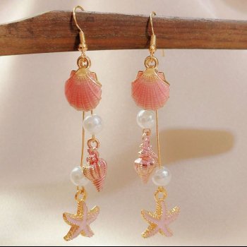 Summer Beach Shell & Starfish Dangle Earrings – Coastal Boho Drop Earrings