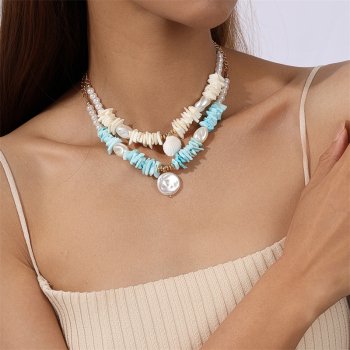 Elegant Double Layer Imitation Pearl & Shell Necklace for Women – Summer Beach Jewelry