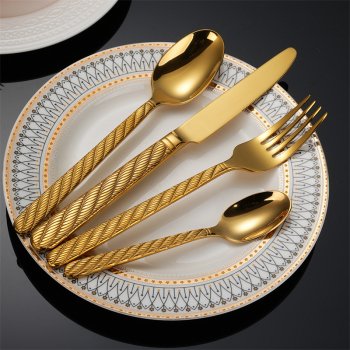 Luxury Gold Stainless Steel Cutlery Set – Engraved Knife Fork Spoon Tableware