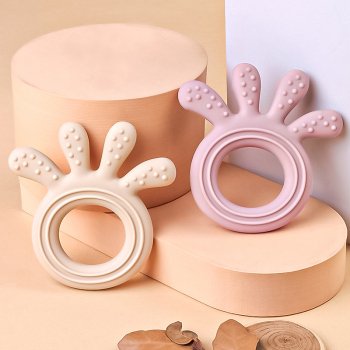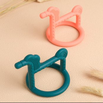Baby Teething Toy Dinosaur Silicone & Wooden Ring BPA Free for Infants